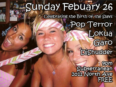 Time: 7-1.30 (Pop Terror goes on at 10.30)